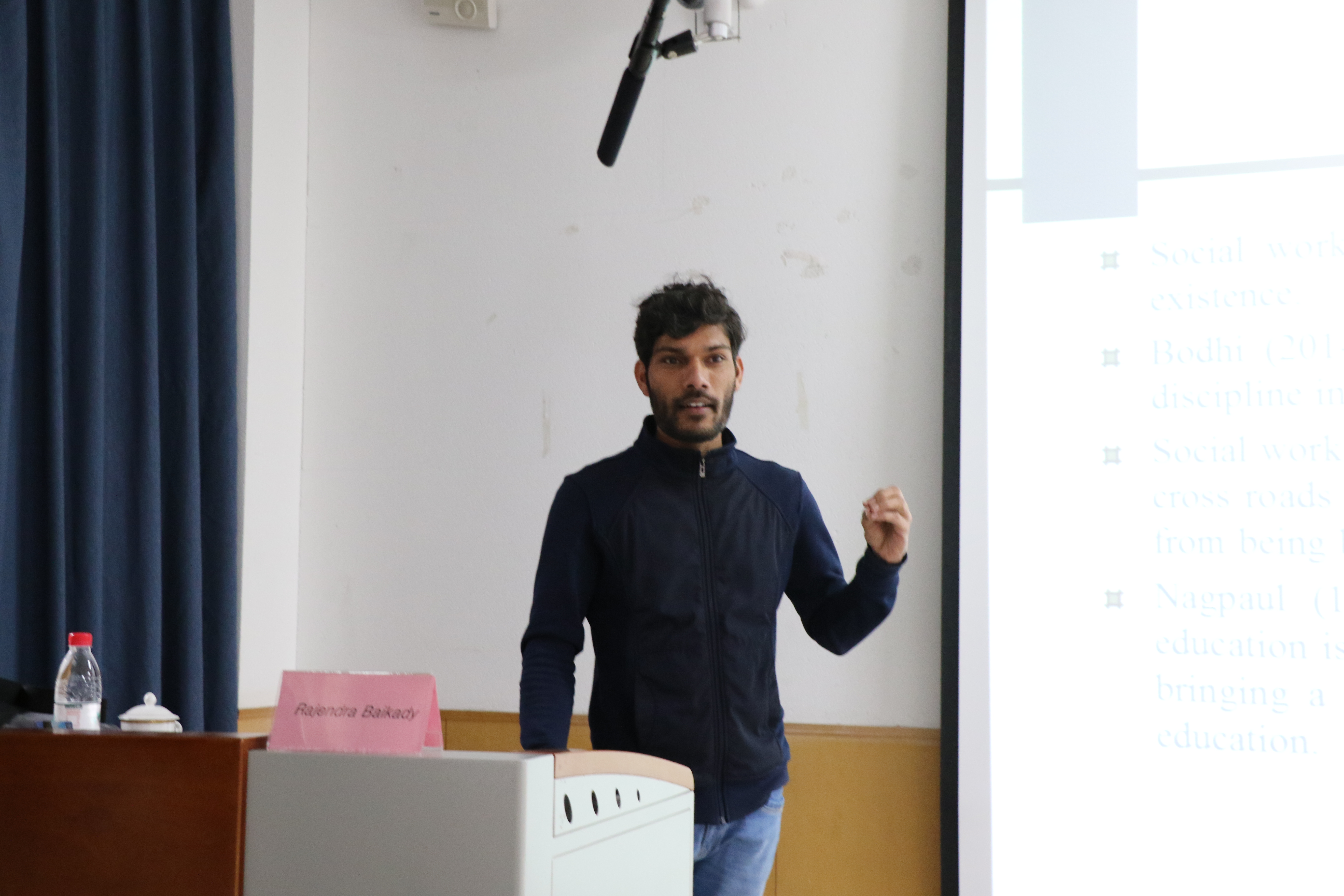 报告会上,Rajendra Baikady博士以中印两国的发展历程为出发点,从社会工作专业发展起源、课程结构调整、面临的专业挑战等九方面对中印两国社会工作教育的现状进行了比较分析。他指出,中印两国都是人口大国,面临着相似的社会问题,社会工作的开展能够为促进社会公平、彰显社会正义、促进社会发展贡献力量。他提到,中印两国在社会工作人才的培养体系、培养方式上存在显著差别。印度在这一领域主要培养的是专业人才,而中国培养的是实务人才,但两国在人才培养目标设置方面具有共同性,都是为了促进社会和谐和公平。Rajendra Baikady博士严谨的治学态度深深感染着聆听报告的每位同学,大家积极提问,Rajendra Baikady博士风趣幽默地一一解答。