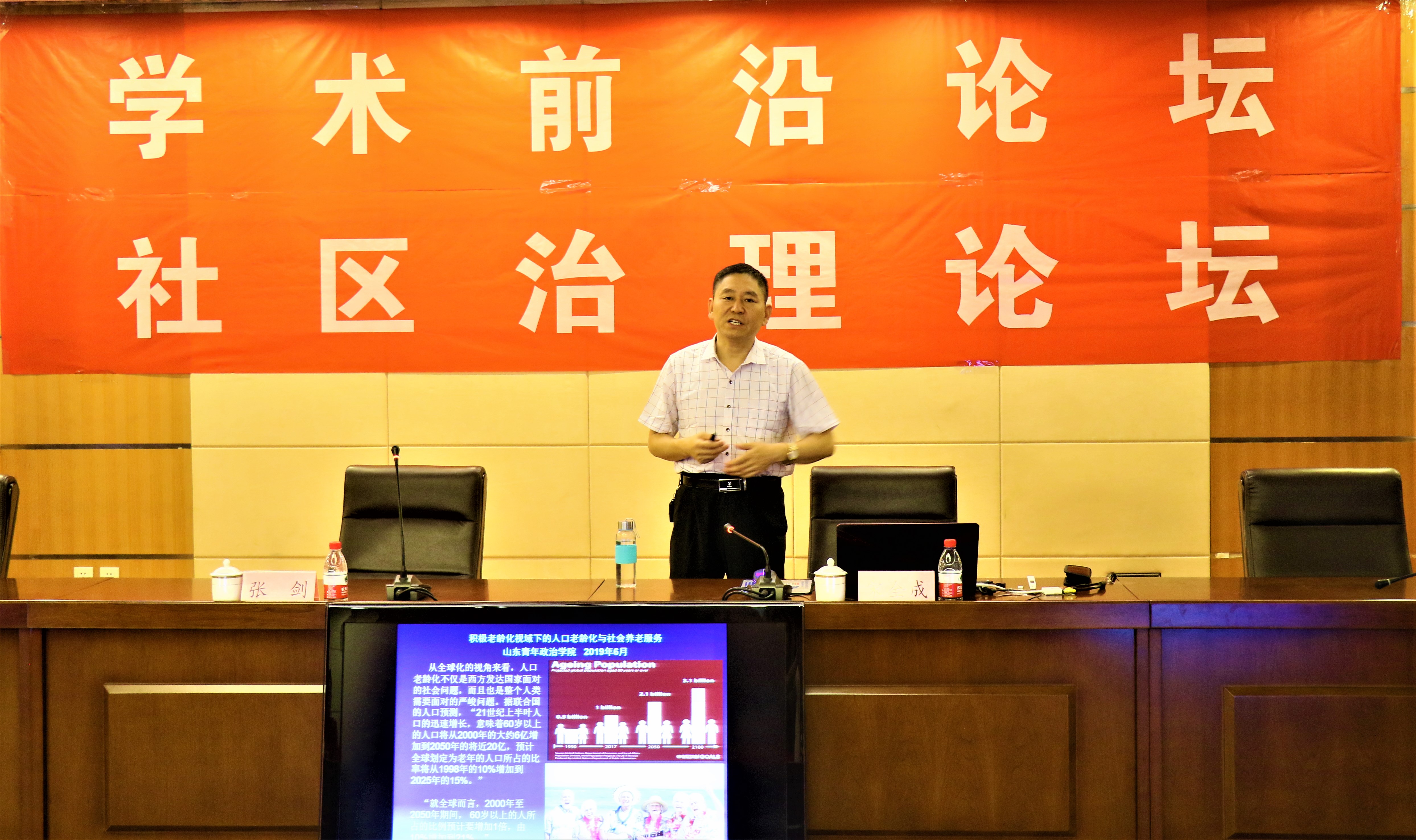 近日,由科研处主办,政治与公共管理学院、现代服务管理学院、山东省社区发展与社会工作研究中心、山东省长青藤养老产业研究院承办的第五十一期学术前沿论坛暨第三十期社区治理论坛于学术会议厅成功举行。山东大学博士生导师、移民研究所所长宋全成教授应邀来我校作了题为“积极老龄化视域下的人口老龄化与社会养老服务”的讲座。本次论坛由政管学院副院长张剑主持,政管学院部分师生代表参加本次活动。