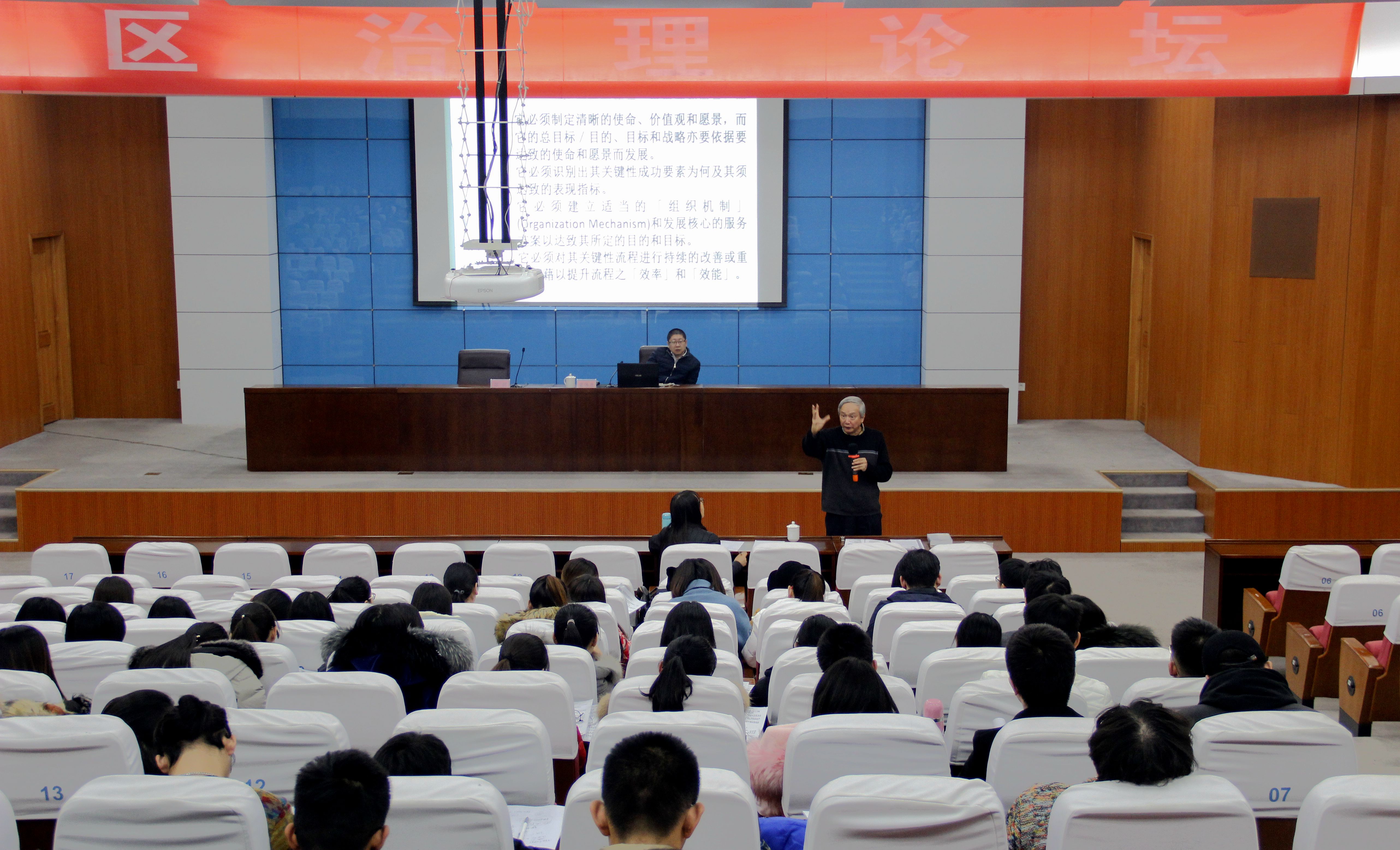 12月18日下午,由政治与公共管理学院主办的社区治理论坛于图书馆西报告厅成功举办。非营利组织卓越管理中心首席顾问梁伟康受邀做了题为“成功社会服务机构的管理与评估”的学术报告。政管学院社会工作专业教师张剑、王俊燕和政管学院同学共同参与了本次论坛。