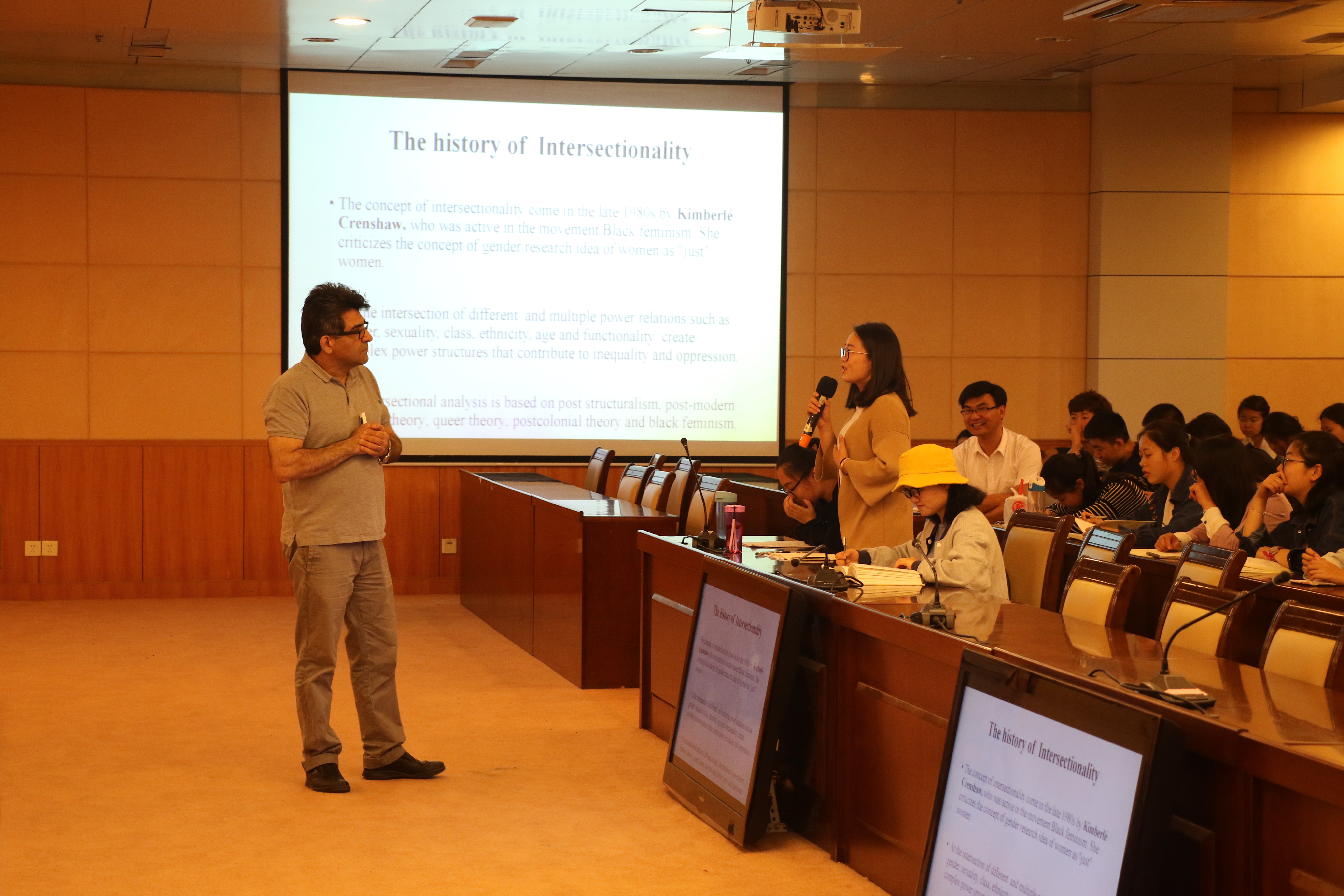 报告会上,Pernilla Liedgren教授针对瑞典的社会工作现状,分别从“什么是联盟”、“关系联盟的重要性”、“关系联盟的复杂性”以及“通过在联盟和关系的治疗性研究中我们能获得什么”四个方面进行了生动的介绍与阐述。他指出,关系联盟的恰当运用对社会工作的推进起到重要作用。随后,Mehradad Darvishpour教授从“交互性的历史”、“运用交互性解释多重权力关系”以及“阶级、性别、种族和其他权利关系的交叉分析”等多个方面详细介绍了社会工作的交互作用。他认为,社会工作的交互作用虽然较为复杂,但对社会工作的运行拥有重要作用。最后,同学们就专业学习中遇到的问题进行提问,两位教授一一耐心解答,现场气氛热烈,活动取得圆满成功。
