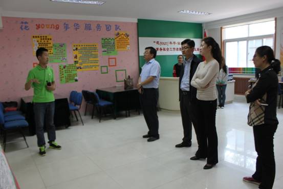 田婷婷副书记等一行首先参观了“社区家友站”项目所在社区办公场地及服务场地,项目社工郭凯详细介绍了项目的服务对象及社区弱势家庭服务开展情况,田婷婷副书记对于项目社工务实认真的工作态度及专业的服务过程表示赞扬。在市中区,地区主任吴京振就项目的基本情况、运作模式、服务团队、服务内容及成效等方面向领导进行一一汇报,张书记一行认真翻阅了项目多年来的服务资料,纷纷感叹资料齐全、服务专业到位并针对自己感兴趣的问题进行了交流学习。接下来,一行人来到我校“新青年”高校社会工作服务项目,听取了项目社工对项目背景、意义和项目服务内容、服务特点的汇报,同时参观了项目个案辅导室和小组工作室,翻阅了项目工作档案。