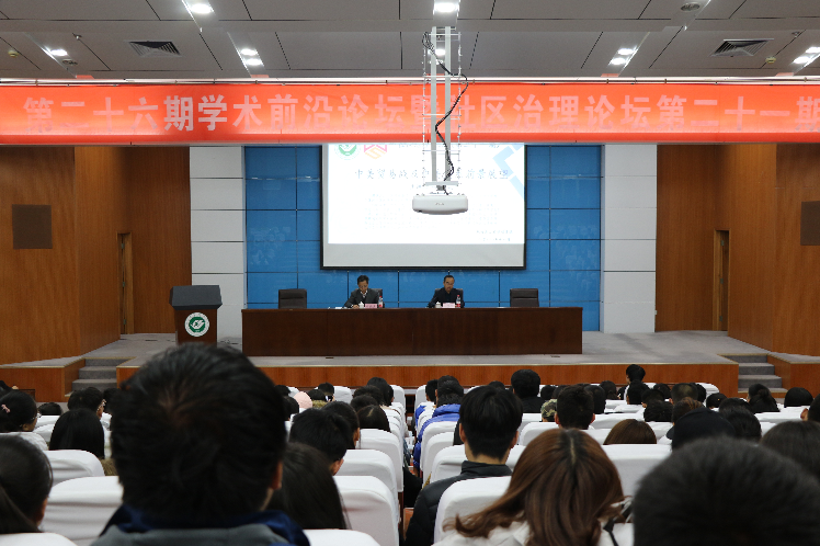 为引导学生关注时事政治,塑造正确的国际政治观,11月15日下午,由政治与公共管理学院主办的第二十六期学术前沿论坛暨第二十一期社区治理论坛于图书馆学术报告厅成功举行。周德武研究员应邀作题为“中美贸易战及中美关系前景展望”的报告,2018级全体学生聆听了本次报告会。报告会由政治与公共管理学院党总支书记于其欣主持。