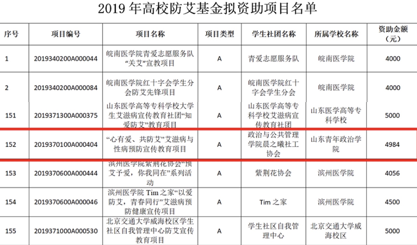 高校防艾基金项目是为支持高校大学生社团开展艾滋病宣传教育工作而设置的资助项目。今年6月以来,中国性病艾滋病协会组织开展了“2019年中国性病艾滋病防治协会高校防艾基金项目”申请工作,本次山东省一共有29个项目获得了立项。