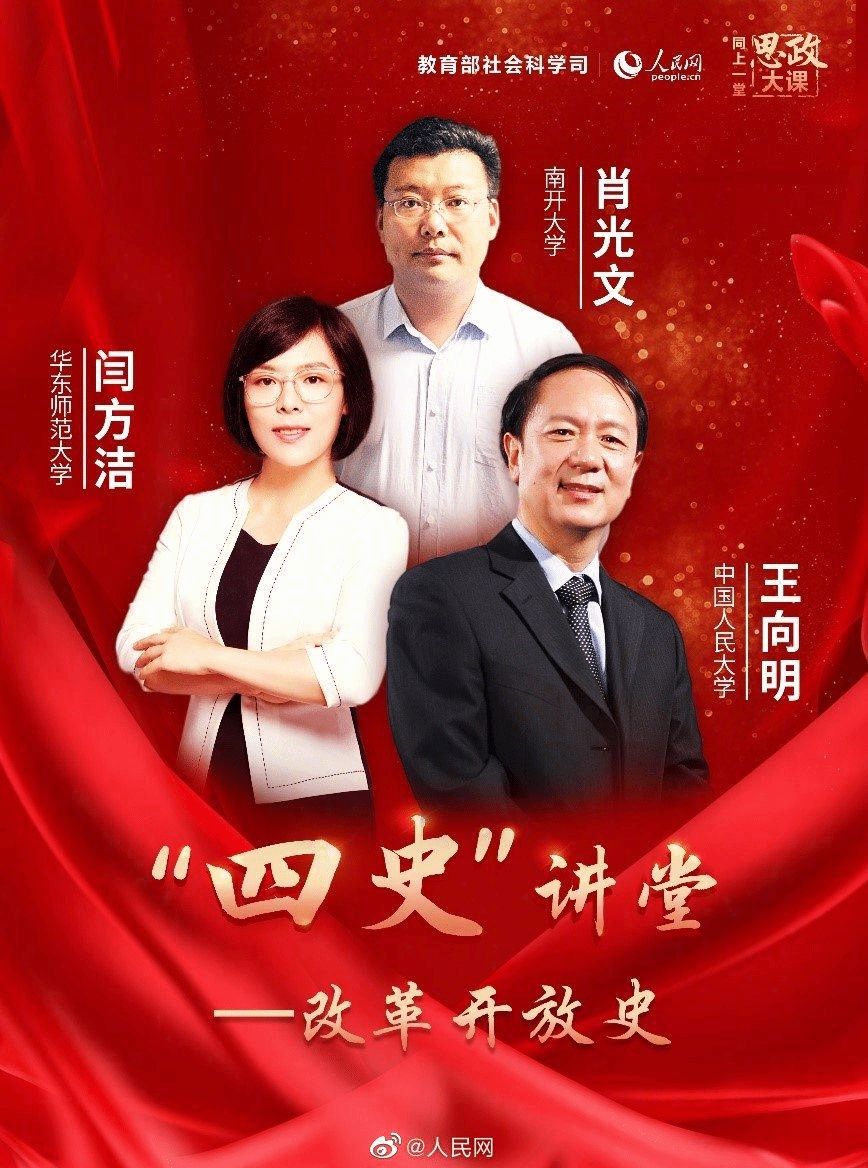 改革开放是决定当代中国命运的关键抉择,是发展中国特色社会主义,实现中华民族伟大复兴的必由之路,这一创造性的伟大实践,深刻改变了中国经济社会的面貌。本堂“四史”思政大课由华东师范大学闫方洁、南开大学肖光文和中国人民大学王向明三位老师共同讲授。
