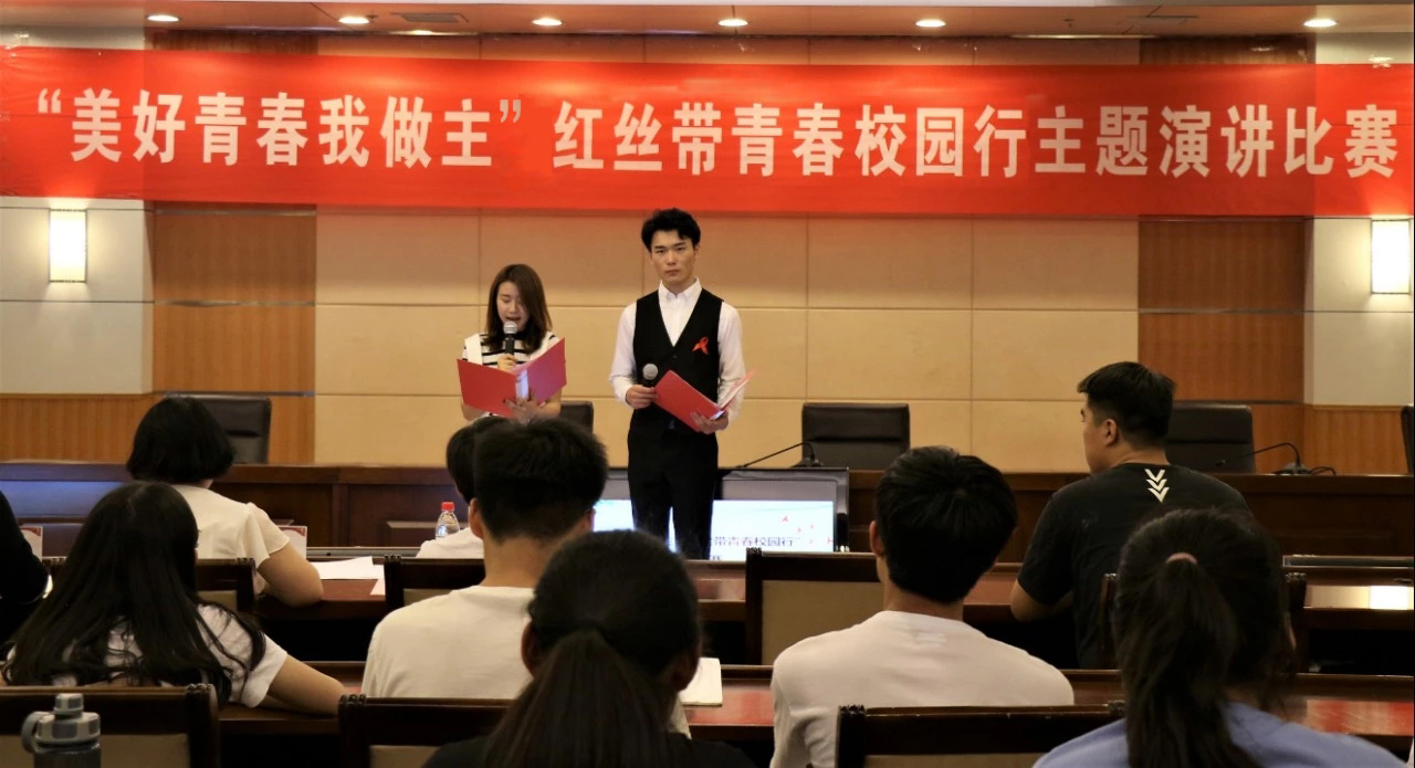 为进一步宣传防艾知识,倡导同学们关爱生命,提高校园青春健康意识。山东青年政治学院主办,政治与公共管理学院承办了以“美好青春我做主”红丝带青春校园行主题的演讲比赛。比赛于6月4日在东报告厅举行,并邀请山东青年政治学院后勤管理处医务中心主任聂栓琴、政治与公共管理学院辅导员毛田惠和政治与公共管理学院学生会杨霄作为裁判,九大学院的参赛选手及学校部分学生代表参与比赛。