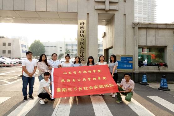 为响应校团委深入开展2016年大学生暑期社会实践活动的号召,提升政管学子的专业能力与综合素质,政管学院积极组建实践团队,将社会实践与专业学习融为一体,开展了专业特色突出、教师参与、内容丰富的暑期实践服务活动。从7月13日至18日,由辅导员于瑶带队,法学教研室主任梁艳,于瑶担任指导教师,政管学院“青春法律行”法律实务锻炼实践团出征起航,组织优秀的法律事务专业学生分别前往山东誉实律师事务所、济南市历下区人民法院和德州市中级人民法院进行为期一个月的暑期专业实践锻炼活动。