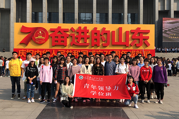 国庆期间,青年领导力学位班将《习近平新时代中国特色社会主义思想与治国理政》这门课程的课堂搬到了山东省博物馆“奋进的山东”70周年成就展的现场,为同学们上了一堂“有风景”的专业课。
