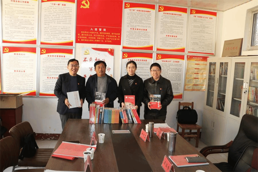 为深入推进“不忘初心、牢记使命”主题教育,切实助力基层农村党建工作的完善与发展,11月13日,山东省社区发展与社会工作研究中心理事长王玉香、党支部书记张剑、政治与公共管理学院党总支书记丁萍、“双百扶贫”驻村社工宋婷等一行赴临清市尚店镇祝楼村走访调研,慰问贫困户,开展“校地社”党建联建共建暨“志愿服务·党徽闪耀”主题党日活动,推动学校、研究中心、农村党支部深入合作交流,努力构建“校地社”三方党建共建模式。尚店镇党委副书记徐秀美、尚店镇司洼社区党总支书记王连国、尚店镇党委委员党建办副主任酆百义、尚店镇祝楼村党支部书记祝维臣、省派第一书记张庆等参加推进会。