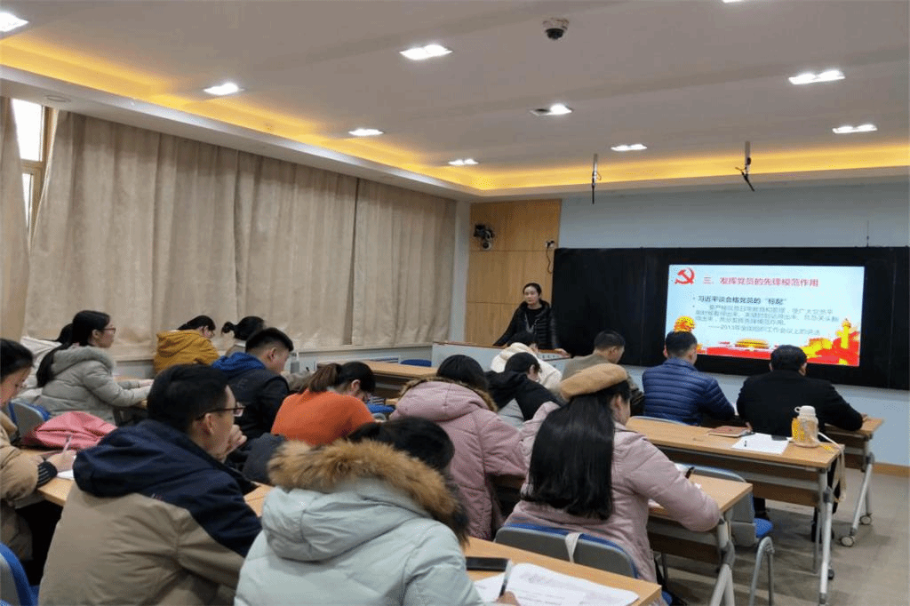 为进一步强化党员发展对象的党性修养,提高政治觉悟、政治敏锐性和政治鉴别力,11月19日,政管学院党总支书记丁萍于社会工作实验室为学院全体党员发展对象讲授“牢记初心使命,争做青年先锋”主题教育专题党课。