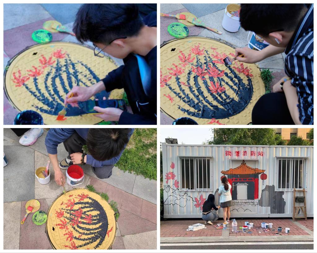活动开展前,公共管理协会积极联系社区工作人员确定改造地点,通过多种途径征集绘画志愿者,搜集相关资料制定核酸采样亭设计方案。活动中,志愿者们热情高涨、干劲十足,用手中的画笔助力核酸采样亭“旧貌换新颜”。他们绘制以环保健康为主题的新时代文明实践站和微型消防站,将自己心目中秀美的泉城以及山河壮丽的祖国绘画出来。经过志愿者们一个月的努力,帝华鸿府社区的核酸采样亭焕然一新。