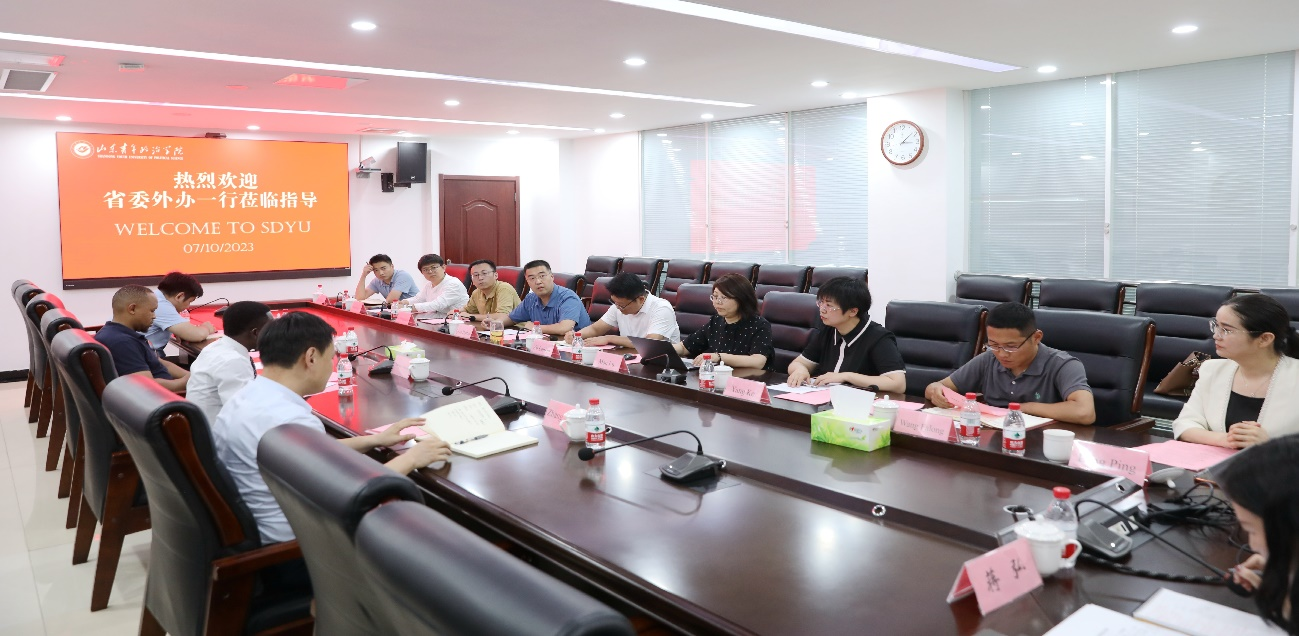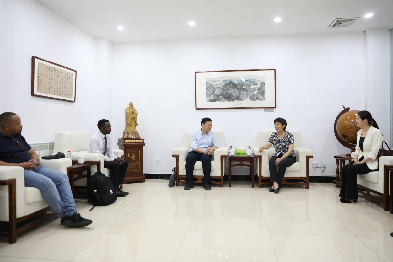 7月10日下午,在国际青年交流大会刚刚落幕之际,南非约翰内斯堡大学非洲-中国研究中心主任伊曼纽尔·马坦博(Emmanuel Matambo)博士、南非金山大学高级讲师卡吉索·祖库杜·保罗·普(Kagiso Tsukudu Paul Pooe)博士在山东省委外事办公室非洲处张晓副处长、二级翻译任继宸的陪同下来校访问。副校长李玉英出席活动,宣传部、国际处、科研处、政治与公共管理学院等部门的负责人,我校公共外交研究院相关专业老师参加了活动。