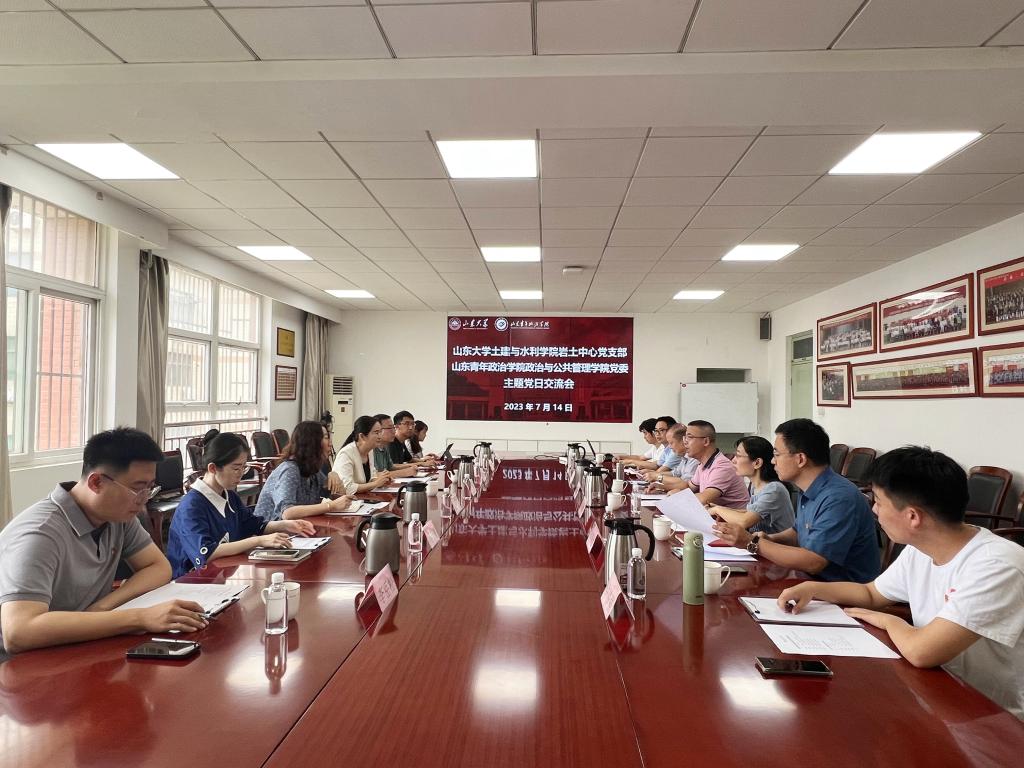 为深入开展学习贯彻习近平新时代中国特色社会主义思想主题教育走深走实,学习高校党建工作有效经验做法,积极探索党建与业务融合方式方法,寻标对标先进,不断提升高质量党建引领事业高质量发展能力水平,7月14日,政治与公共管理学院党委书记丁萍、教工第二党支部书记卢鹏程副院长、教工第一党支部书记王俊燕教授、学生第二、四、五、六党支部书记等一行赴山东大学调研学习,与山东省先进基层党组织土建与水利学院党委、首批全国党建工作样板支部岩土中心党支部相关负责人等深入座谈交流。山东大学土建与水利学院党委书记刘斌、党委副书记辛帅、岩土工程中心常务副主任林春金、党务秘书何敬源、研究生党支部书记许伟强、力学建筑研究生第一党支部书记张宇等参加了座谈交流。活动由岩土工程中心党支部书记李海燕教授主持。