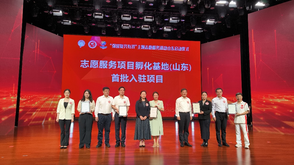 启动仪式上,学校党委委员、组织部部长、宣传部部长蒋涛涛汇报了志愿服务项目孵化基地(山东)的前期筹备建设情况。随后,中国志愿服务联合会常务副会长孙志军、省委宣传部副部长孙文利共同为基地揭牌。邓丽娟、孙文利、张同海、蒋涛涛、学校政治与公共管理学院党委书记丁萍为首批入驻基地的项目颁发了证书。