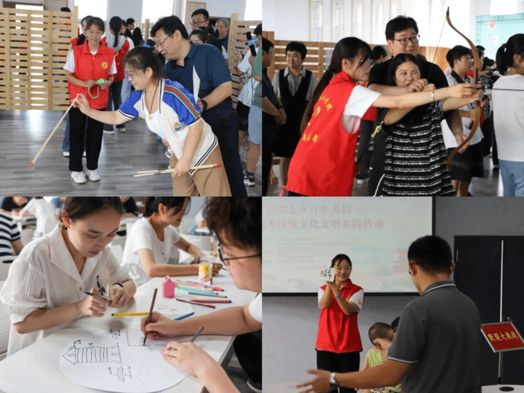 为深入挖掘优秀传统节日七夕节的丰富内涵,传承中华优秀传统文化,营造文明健康的社会环境和积极向上的人文氛围,助力社会和谐稳定发展。8月20日,由历城区文明实践中心及郭店街道办事处主办,山东青年政治学院(志愿服务项目孵化基地·山东)指导的“虞”见美好·幸福郭店---2023七夕青年夫妇传承中华优秀传统文化文明实践活动顺利开展。山东省志愿服务指导中心主任杜玉松、山东青年政治学院(志愿服务项目孵化基地·山东)孙成键受邀参与本次活动,学院志愿者带队教师王婧及晨之曦社工协会王越、郑樟鑫等十余名志愿者参与开展了本次活动。