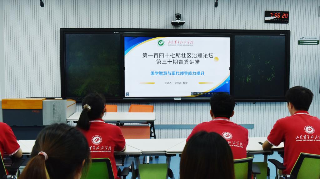 此次“砺行集训营”邀请了中国海洋大学教授、博士生导师、山东省高校干部与人才研究基地主任薛永武教授作了题为《国学智慧与现代领导能力提升》的讲座。薛教授以国学为线索循循善诱,讲解国学智慧与领导力提升的关系,以国学智慧赋能领导力发展。聆听专家的精彩讲座,学员们受益匪浅,对“领导力”的内涵有了更深层次的理解,对“领导力提升”的实践路径有了更清晰的规划。