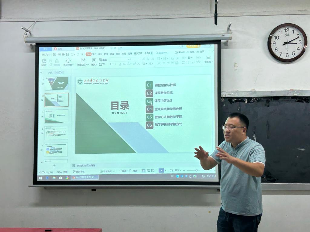 此次说课活动坚持以创新课堂教学为主题,以夯实课堂教学基本功,提高课堂教学质量为主要目标。参与的教师综合运用现代化教学手段,在教学理念、教学内容、教学方法等方面进行了不同程度改革和创新展示,将“课程思政”充分融入课堂教学建设全过程,突出“青年政治”办学特色。