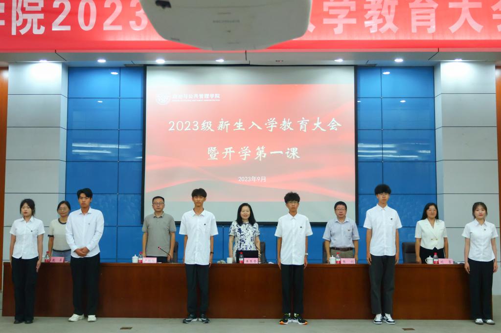 教师代表于凤杰从潜心求学和提高人际交往能力两个方面出发,表达了对新生早日成才、成就自我的美好祝愿。新生代表2023级社会工作专业学生赵晓斐,表达了初入大学的欣喜与憧憬以及搏击长空、勇攀高峰的勇气与决心,代表全体新生发出“立志在山青、在政管以昂扬进取的姿态,提高学识、增长才干,让青春在奋斗中绽放绚丽光彩”的号召。