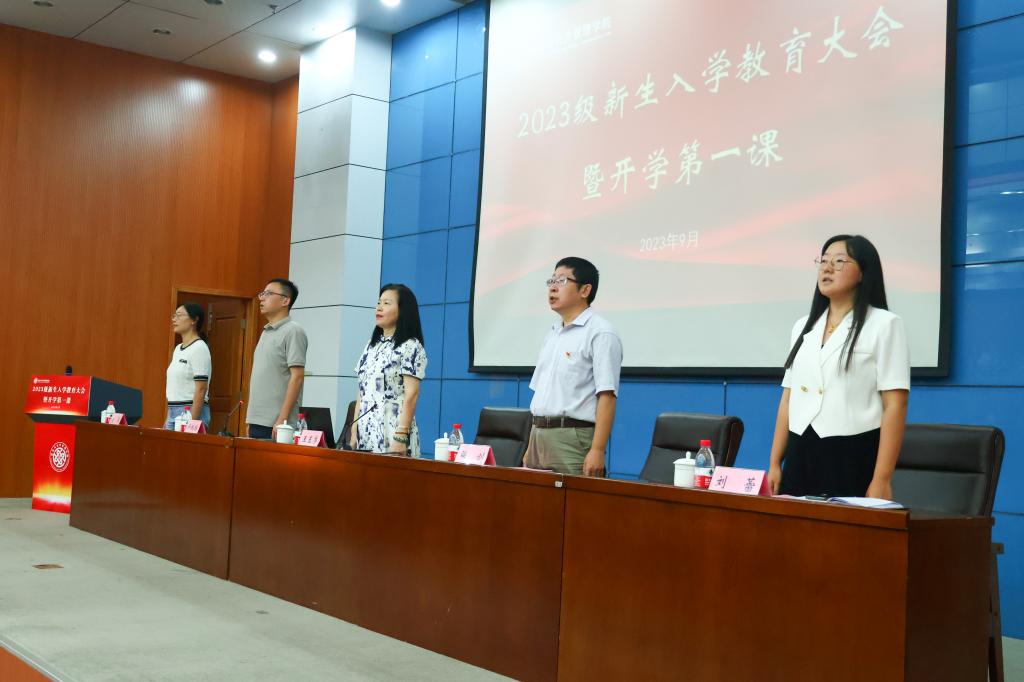 击鼓催征稳驭舟,奋辑扬帆启新程。本次新生入学教育大会对于新生适应环境、转变角色、端正态度具有重要意义,下一步,学院将以本次“开学第一课”为契机,严格贯彻执行新生入学教育方案,引导大一新生快速适应大学新的学习和生活环境,继续从理想信念、专业导学、学业规划、安全防范、能力提升等方面引导学生求真学问、练真本领,在勤学、修德、明辨、笃实中不断进步,以最佳姿态投入新的学习生活中,书写无悔青春!