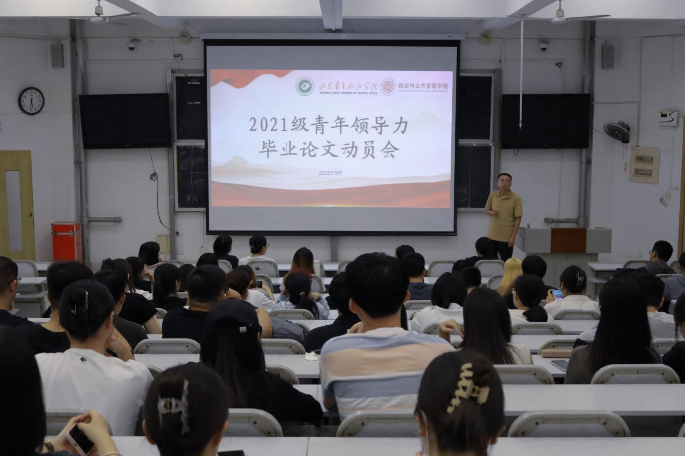 为进一步提高青年领导力学位班学员毕业论文质量,规范毕业论文管理,加强学术诚信建设,9月20日,青年领导力学位班组织召开2021级毕业论文动员大会。大会由政治与公共管理学院副院长卢鹏程主持,2021级学位班全体同学参加。