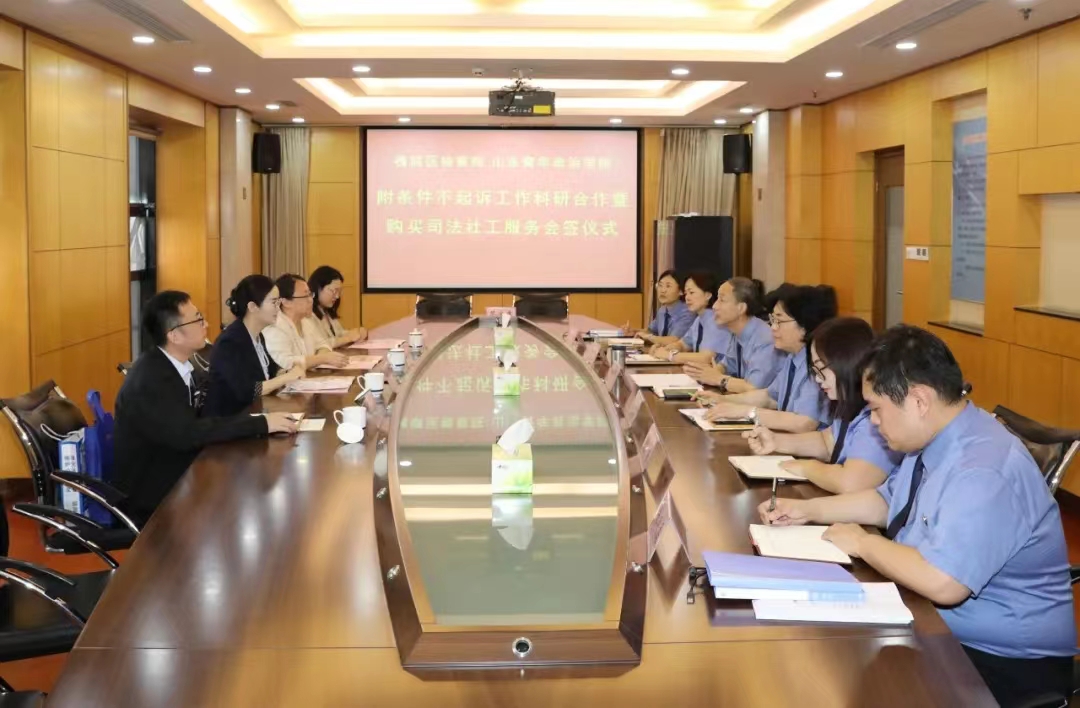 王泳淳副检察长对槐荫区检察院的基本情况作了简要介绍,他表示,槐荫区检察院持续推进社会支持体系建设工作,编辑了全省第一本社会支持体系白皮书,被山东省人民检察院确定为全省附条件不起诉观护帮教规范化、实效化试点单位。他希望通过双方合作,推动未成年人附条件不起诉观护帮教规范化、实效化试点工作走深走实,共同努力打造附条件不起诉工作槐荫样板。双方还围绕党组织联建共建、党建品牌创建、法治宣传教育创新等进行了深入交流。