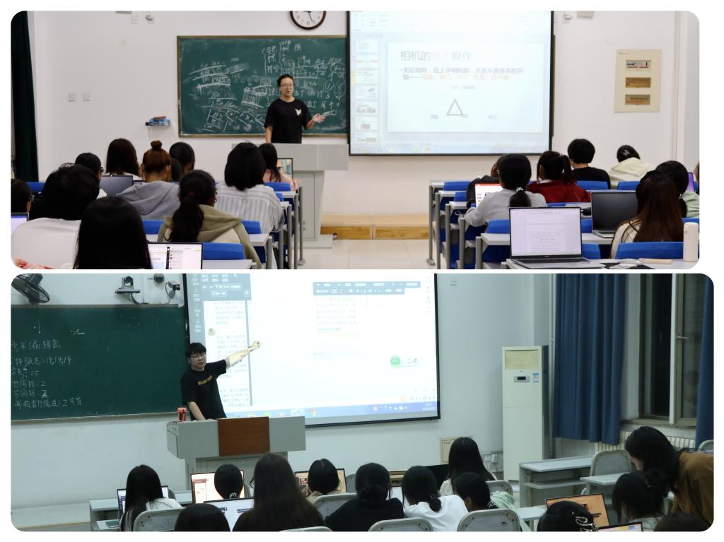 张泽园、隆晓艺详细地介绍了摄影摄像设备的使用,对拍摄内容、素材选取、视频剪辑进行了专业的技术指导,并通过现场操作演示指导实习生们尝试使用云台等设备,以便更快、更熟练地操作专业设备。