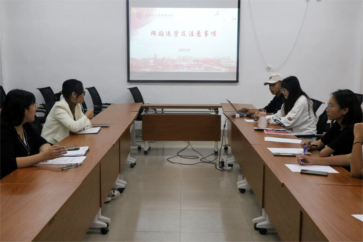 10月24日下午,政治与公共管理学院办公室于敏行楼104会议室召开网站运营工作专题培训会。会议由学院办公室教师刘晓飞主持。办公室主任刘蕾及部分学生助理参加。