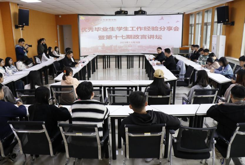 为进一步加强学生骨干队伍建设,发挥优秀毕业生的“朋辈”榜样作用,提高学生的政治素养、服务意识和专业化水平,打造一支“有理想、有追求、有担当、有作为、有品质、有修养”的学生骨干队伍,11月3日下午,政治与公共管理学院邀请优秀毕业生2019级社会工作专业张洪瑞和张鑫龙做客第十七期政言讲坛,面向学院学生骨干开展学生工作经验分享会。会议由学院辅导员于晓光主持。