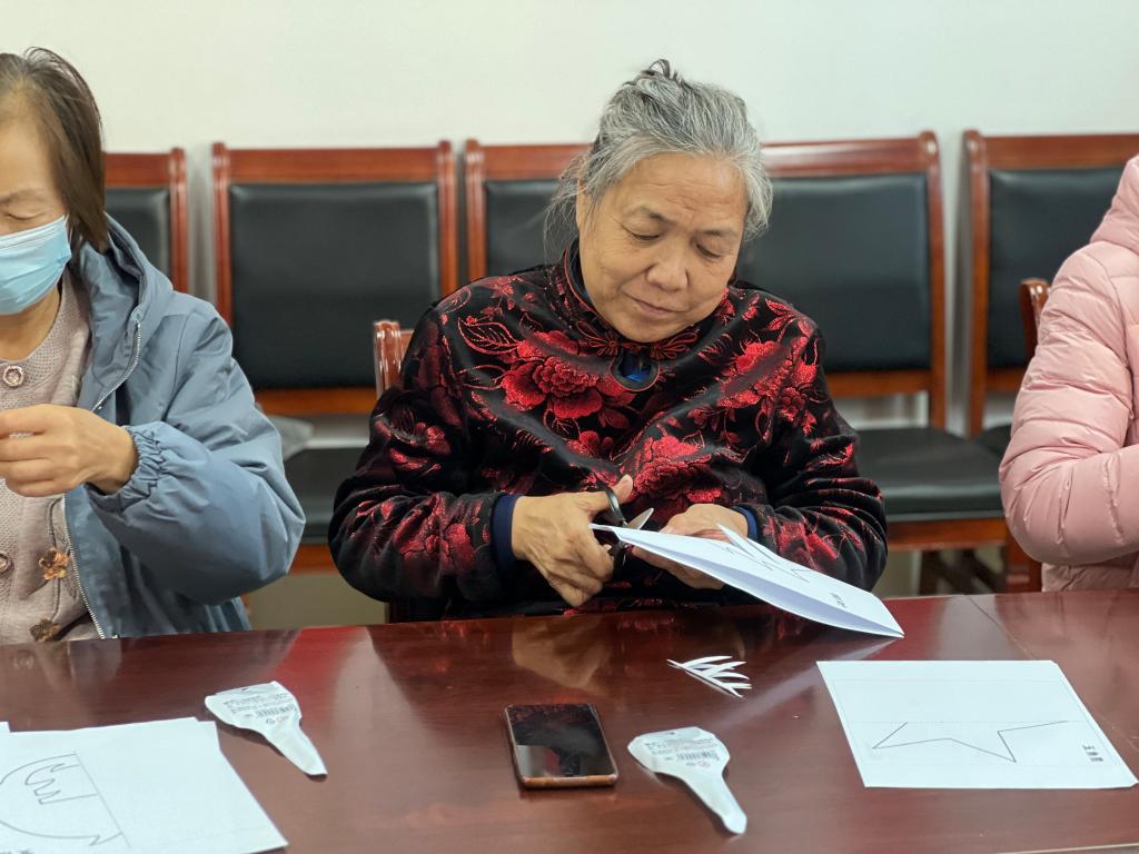 活动伊始,志愿者围绕剪纸艺术的发展历史、历史典故、种类用途、制作方法等内容以及济南特色剪纸进行了详细讲解,帮助社区居民全面认识剪纸艺术。随后,志愿者向社区居民发放了剪刀、剪纸等物品,按照折纸、画线、开剪等步骤教授居民剪纸艺术。在志愿者的指导下,经过一番努力,一幅幅精美、充满想象力的剪纸作品纷纷呈现在大家眼前,社区居民也在剪纸过程中体会到了剪纸艺术的魅力。