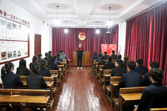 入团仪式在庄严的国歌声中拉开序幕。“我志愿加入中国共产主义青年团,坚决拥护中国共产党的领导……”在团旗的见证下,全体团员佩戴团徽,端正肃立,举起紧握的右拳庄严宣誓。庞翠宣读了2023年下半年新发展团员的名单并详细解读了共青团员的权利与义务。新老团员代表王冰莹与徐小雅分别发言。他们表示,作为一名共青团员,要继承和发扬共青团的优良传统,以团员的标准严格要求自己,刻苦学习、努力奋斗,积极参与社会实践,为人民服务,不断地提高思想觉悟,牢记党的教导,坚定理想信念,增强对党的信仰和忠诚,用实际行动践行入团誓言,争做新时代优秀共青团员。