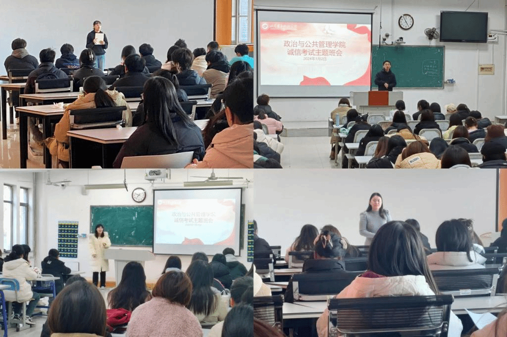 为严肃考风考纪,切实加强学风建设,营造“公平、公正、诚实、守信”的考试氛围,近日,政治与公共管理学院组织召开诚信考试主题班会,班会由学院辅导员主讲。