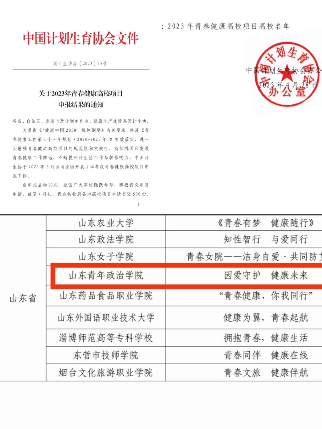 中国计划生育协会青春健康高校项目,旨在培养有责任、有担当、有作为的青年人,促进大学生身心健康发展。我校晨之曦社工协会“因爱守护,健康未来”项目中标中国计划生育协会2023年青春健康高校项目,获批计生协10000元的资金支持,是2023年济南市11所中标高校中获得中资金支持的三所高校之一,这也是晨之曦社工协会连续五年成功获批青春健康高校项目。