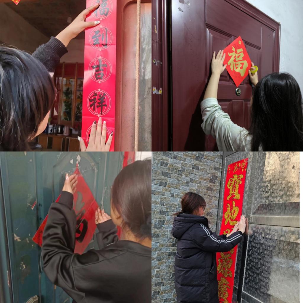 “千门万户曈曈日,总把新桃换旧符”。春联,又叫“春贴”“门联”“对联”,它以对仗工整、简洁精巧的文字,描绘了美好愿景,表达了人们对美好生活的向往,是中国人欢度春节的重要习俗之一。墨香浓浓写温暖,春联幅幅迎佳节。春节来临之际,政管学子们与家人们一起相互协作,将一幅幅具有美好寓意的春联和喜庆的“福”字贴在门上,不仅营造出了浓浓的年味和喜悦氛围,也在贴春联的过程中加强了与家人之家的情感沟通,让心灵受到了传统文化的浸润。