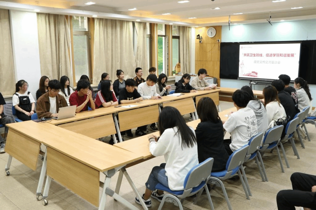 为加强院际学生组织之间的交流沟通,进一步提升两院学生组织工作能力和服务质量,4月30日,政治与公共管理学院学生会生活服务部与文化传播学院学生会宿舍管理部于敏行楼社工实验室开展“共筑卫生防线 促进学院和谐发展”主题交流座谈会,双方志愿者代表参加活动。
