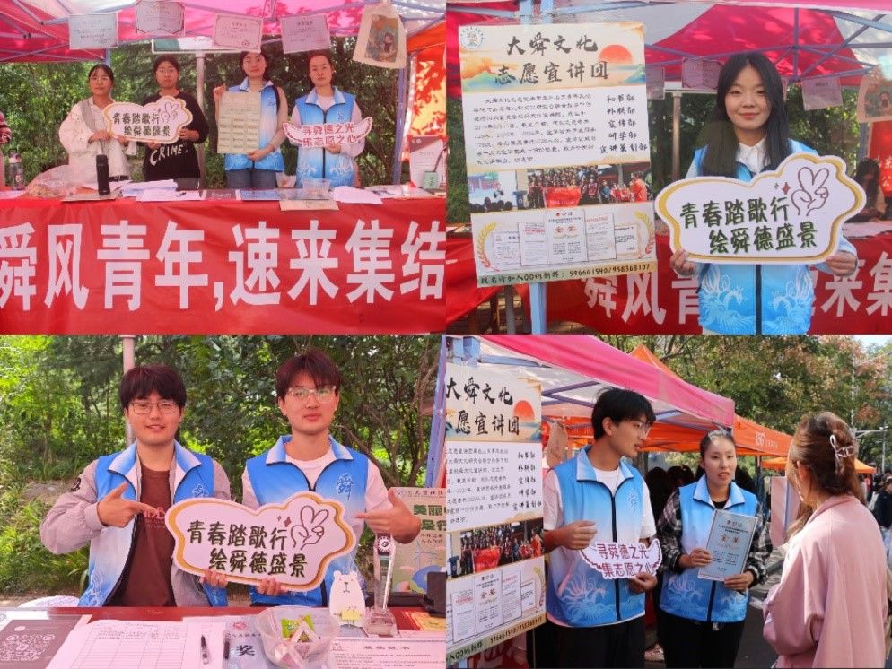 10月10日至11日,大舜文化志愿宣讲团积极参与“百团大战”,为山青学子开启多彩校园生活新篇章。志愿们在摊位前热情地向同学们介绍大舜文化的精神内涵以及宣讲团的主要活动和成就,耐心地解答同学们的疑问。同时,宣讲团还特别设置“有奖问答”环节,通过一系列生动有趣的互动与交流,使学生们对大舜文化志愿宣讲团有了更为深刻的认识与了解,成功吸引了众多同学报名。
