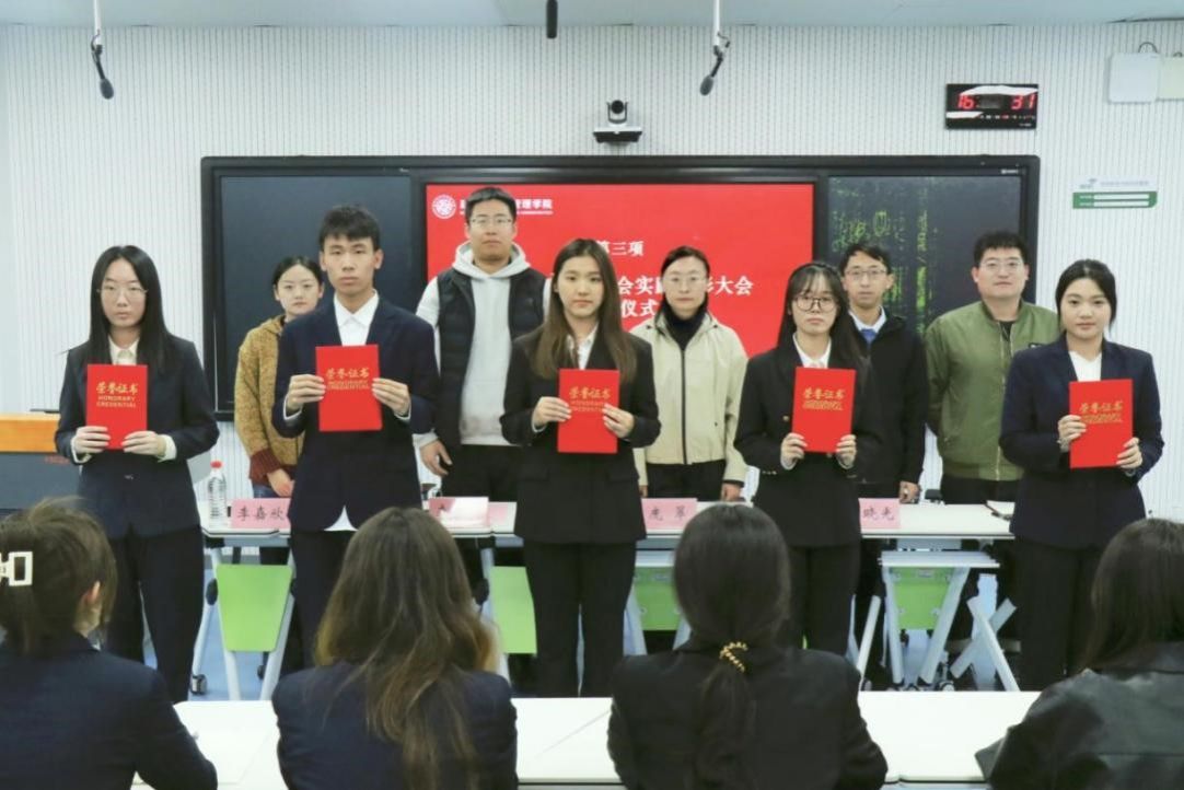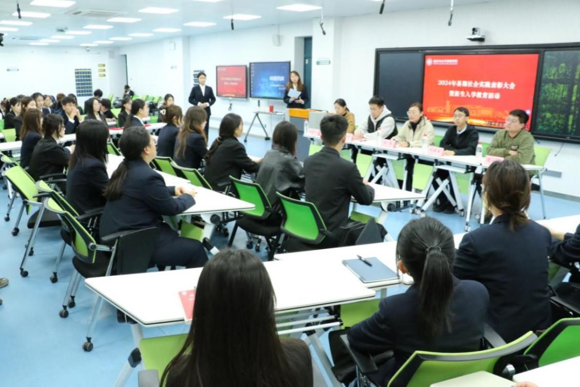 为全面总结学院2024年暑期社会实践活动成果,树立榜样、表彰先进,激发广大新生积极主动投身社会实践的热情,做好新生关于社会实践的入学启蒙教育,11月4日,政治与公共管理学院召开2024年暑期社会实践表彰大会,学院团总支书记庞翠、辅导员代表、暑期社会实践团队以及新生代表共同参会。