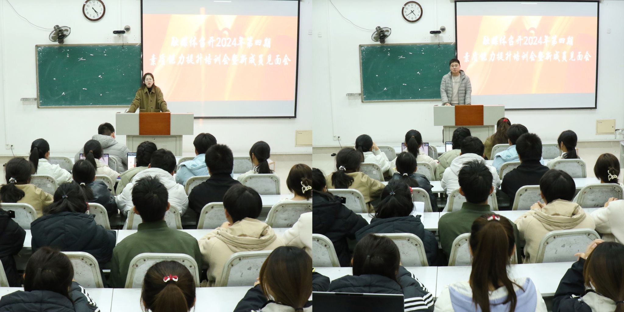 为进一步提高新一届学生宣传队伍的综合素质和技能内核,11月28日,政治与公共管理学院学生会融媒体中心举办了2024年第四期素质能力提升培训会暨新成员见面会。本次会议由融媒体中心学生负责人隆晓艺主持,辅导员马千惠、李新华参会,融媒体中心全体成员参加。