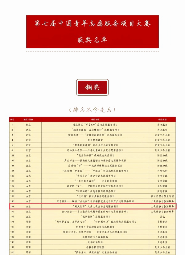 在第五届山东省青年志愿服务项目大赛荣获铜奖!