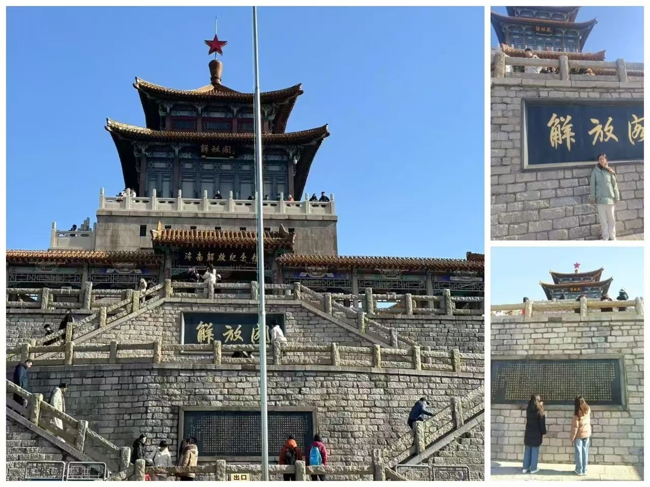 走进解放阁这座承载着深厚历史底蕴和革命精神的纪念地。首先映入眼帘的是陈毅元帅亲笔题写的“解放阁”三个大字,其笔力遒劲,气势恢宏。团队成员通过参观一幅幅历史图片、一件件珍贵文物和逼真的场景复原,深刻感受到了济南战役的艰苦卓绝。通过认真聆听讲解,团队成员仿佛穿越时空,见证了革命先烈们英勇斗争的历史瞬间。参观结束后,成员们围坐一起,分享起了各自家乡的红色文化故事。这些故事以不同的角度诠释了红色文化的内涵,同时更饱含着青年学子对老一辈革命者的敬仰与怀念。