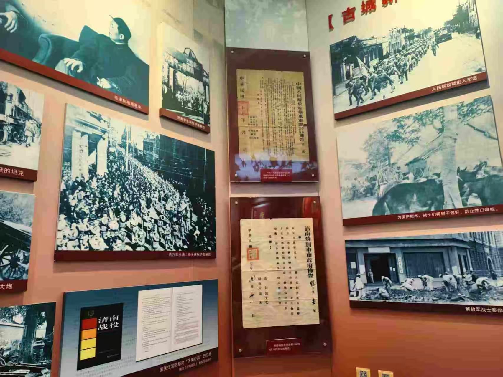步入展厅,大量珍贵的歌名文物映入眼帘,这些文物见证了济南战役的辉煌历史,承载着先辈们的崇高精神。团队成员驻足凝视,认真聆听讲解员的介绍,被先辈们的事迹深深震撼,深刻体会到,正是有了先辈们的英勇奋斗和无私奉献,才有了今天的和平与繁荣。