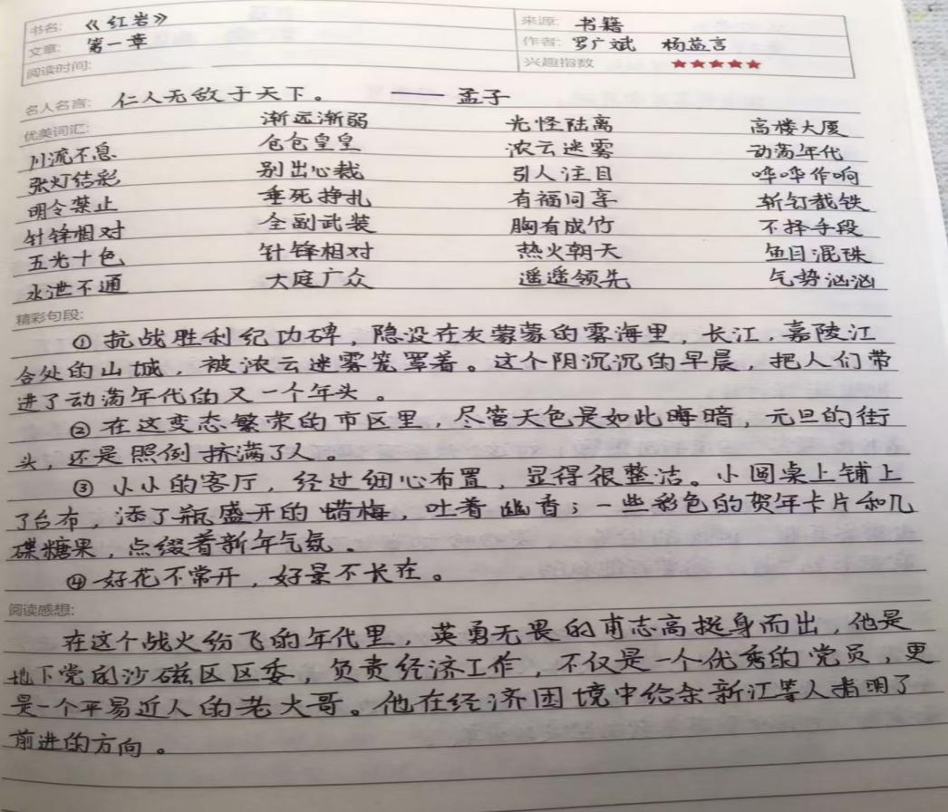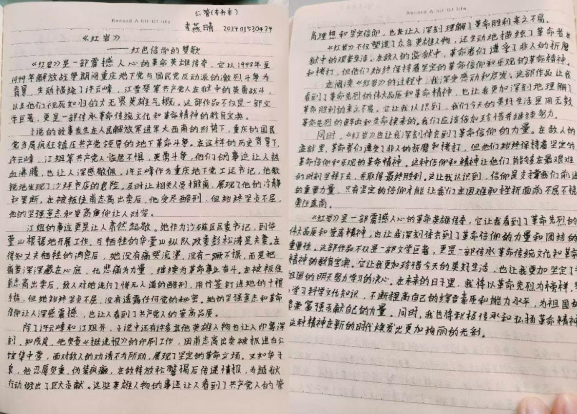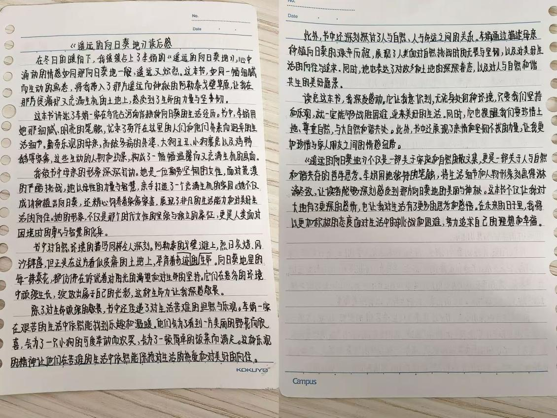 这些作品,皆源自同学们对经典著作的深度阅读与潜心钻研。他们沉浸书海,反复品味书中的一字一句,而后精心打磨,将所思所感凝于笔下。有的同学在《平凡的世界》里感悟生活的真谛,以真挚笔触撰写读后感,让读者也能触摸到书中人物的坚韧与执着;有的同学在《红星照耀中国》的光辉中深受启迪,深刻领悟革命先辈的伟大精神;也有人在《遥远的向日葵地》里,思索人与自然的关系,深化了对和谐共生理念的认知。从不同书籍中获得独特感悟,并用细腻文字记录下来,最终成就了一篇篇满含个人情思的读后感。