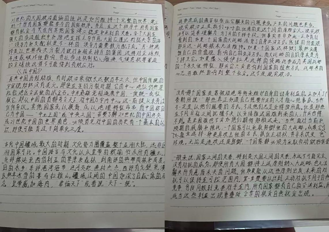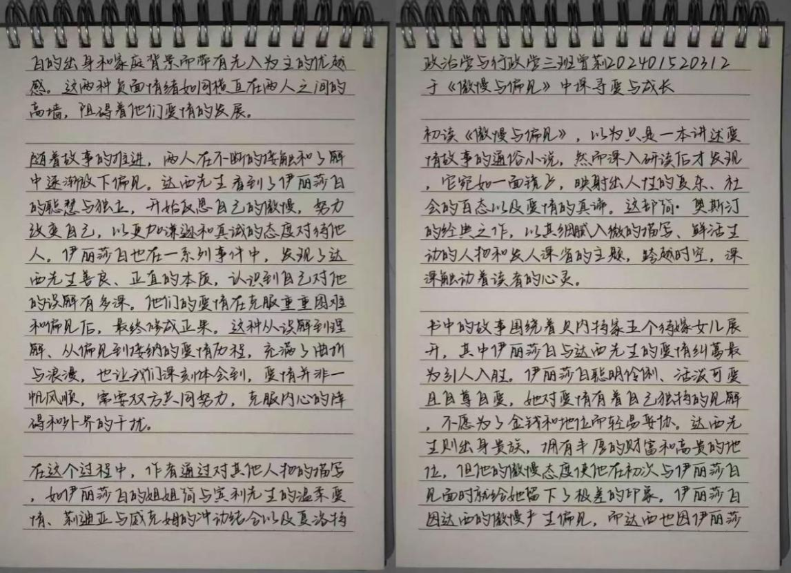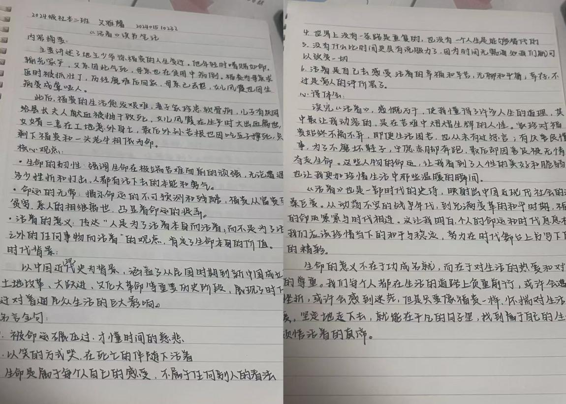 本次活动犹如一颗火种,点燃了同学们内心深处对阅读的澎湃热情。政管学子们一头扎进书页的字里行间,在书中领略人间的酸甜苦辣,感受着文字那悄无声息却又极具震撼力的独特魅力。阅读之后,同学们并未浅尝辄止,而是在深入思考中沉淀,逐字逐句地钻研,将内心的触动与感悟倾注在笔端,写下一篇篇饱含真情实感的文字,记录自己对书中故事的独特见解。这些珍贵的感悟,不仅是同学们阅读成果的体现,更是为本次活动的成功举办添上了浓墨重彩的一笔。