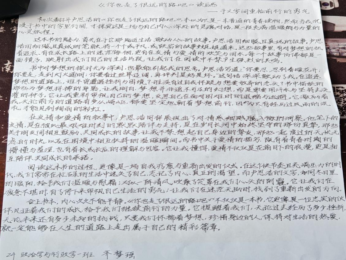 文学经典,凝聚着人类思想的精华。为引领同学们重温经典,这个假期,政治与公共管理学院积极组织开展了“致敬文学经典,汲取精神力量”寒假阅读主题活动。在本次活动中,同学们以饱满的热情积极投入,下面,就让我们一同走进这场精神盛宴,欣赏那些脱颖而出的优秀作品,感受其中的独特魅力吧!