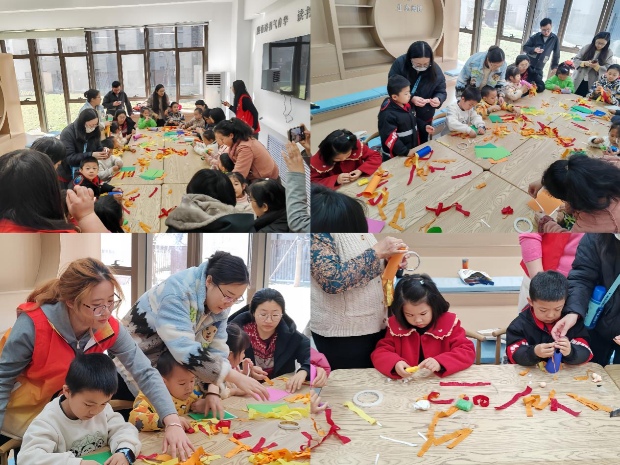 活动还围绕绘本开展了亲子手工实践活动。在完成互动游戏后,亲子家庭共同投入到“喷火龙”的制作之中。在家长的陪伴下,孩子们发挥自己天马行空的想象力,选择不同颜色的卡纸、太空泥以及火焰纸条制作出自己独一无二的“喷火龙”。