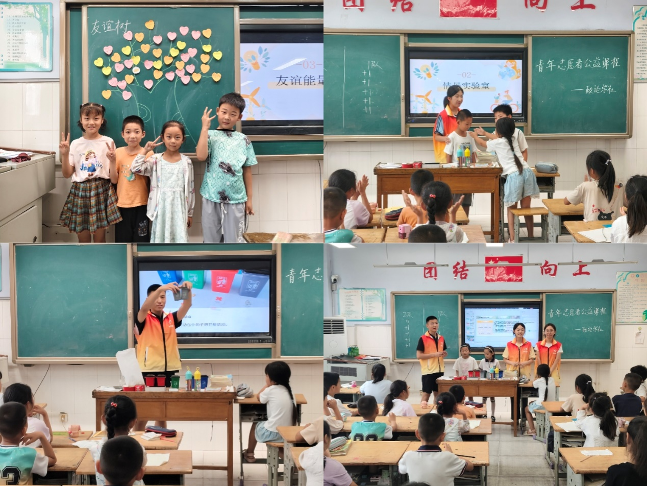 结合文明校园建设,支教团成员走进课堂开展了“美丽家园我行动”与“学会表达,我们都是好朋友”课程,旨在以寓教于乐的方式,帮助孩子们树立环保生活理念,培养健康的人际交往意识。活动中,孩子们积极参与游戏、精心装饰友谊标签树,让文明生活与快乐交往的种子在欢声笑语中悄然扎根,期待这些种子将会在孩子们稚嫩的心灵中开出美丽的花朵。