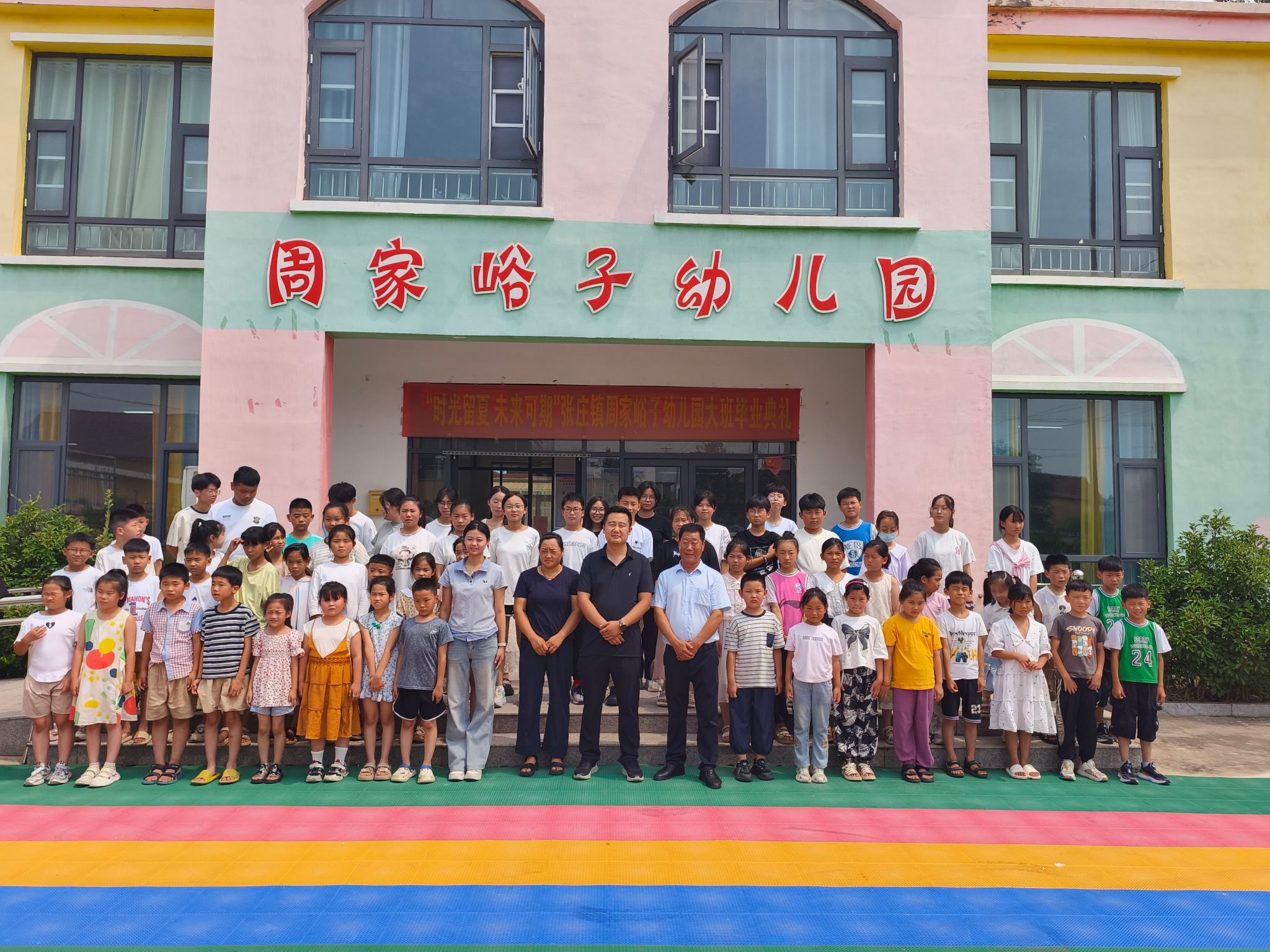 仪式最后,与会人员集体合影留念。支教团成员与周家峪子村的孩子们随即开展了轻松愉快的破冰游戏,迅速拉近了彼此距离,为后续支教工作的顺利开展奠定了良好基础。孩子们用兴奋的掌声和期待的眼神为这场充满新奇与希望的支教之旅拉开了序幕。一场满载青春梦想与爱心的支教之旅,在沂蒙大地上正式启航。