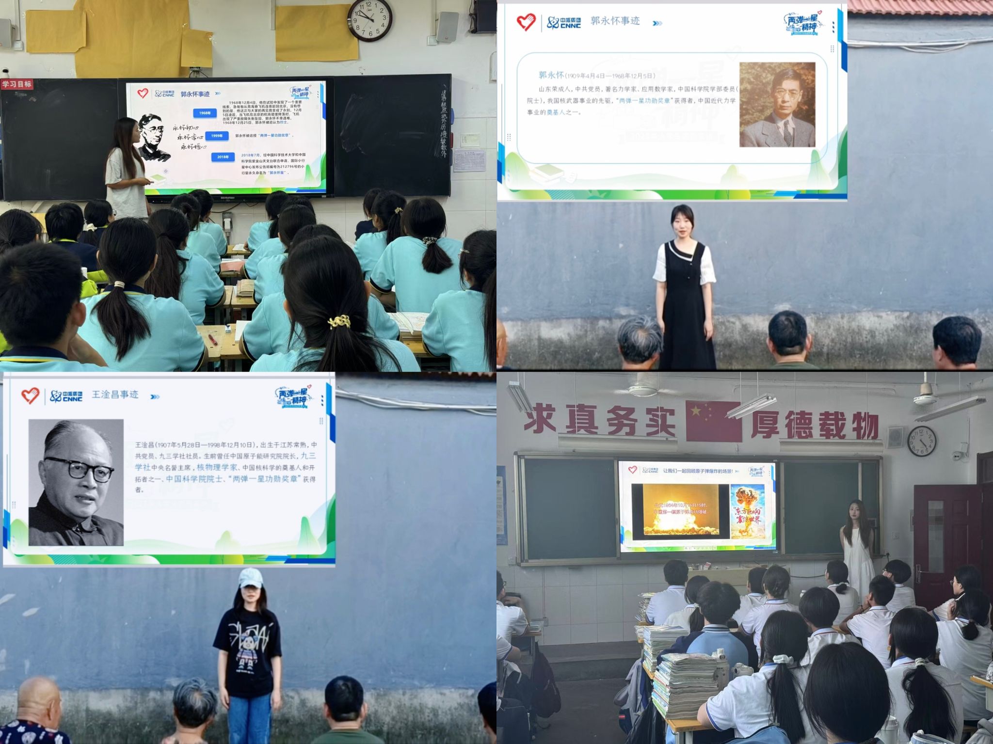 宣讲中,团队成员通过PPT展示、故事讲述、多媒体视频播放等形式,系统梳理了“两弹一星”的研制背景,以王淦昌、郭永怀两位科学家的科研经历为例,讲述他们在面对国际压力和科研困难下热爱祖国、无私奉献的家国情怀,并且结合自身的理解和感悟,进一步带领大家体会了老一辈科学家“干惊天动地事,做隐姓埋名人”的崇高精神,有效加深了听众对“两弹一星”精神的认识和理解。此外,团队成员结合量子通信、高温超导等领域的当代成就,阐释新时代“两弹一星”精神的传承,激励青年学生以“两弹一星”精神为指引,以家国为怀、以创新为刃,努力学习,努力为实现中华民族伟大复兴的中国梦注入青春力量。