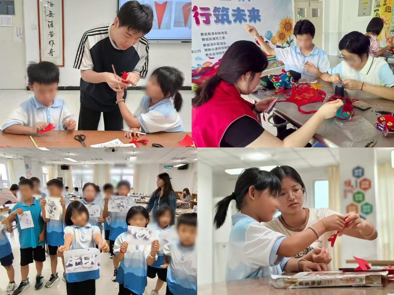创新融入“非遗+生命”教育理念,是本次支教的鲜明特色。沂蒙文化蕴含着生生不息的智慧,实践团深挖当地非遗资源,将沂蒙民歌、剪纸等传统技艺请进课堂。孩子们在学唱沂蒙民歌时,从悠扬旋律中感受老区人民乐观坚韧的生命态度,在歌声里传承“不畏艰难、向阳而生”的精神力量;剪纸课上,剪刀游走间,花鸟虫鱼跃然纸上,孩子们在传承技艺中体会“创造赋予生命意义”的哲理。这种将生命教育与非遗传承相结合的方式,让文化根脉在滋养生命成长的过程中得以延续,实现了“育人”与“传承”的双向赋能。