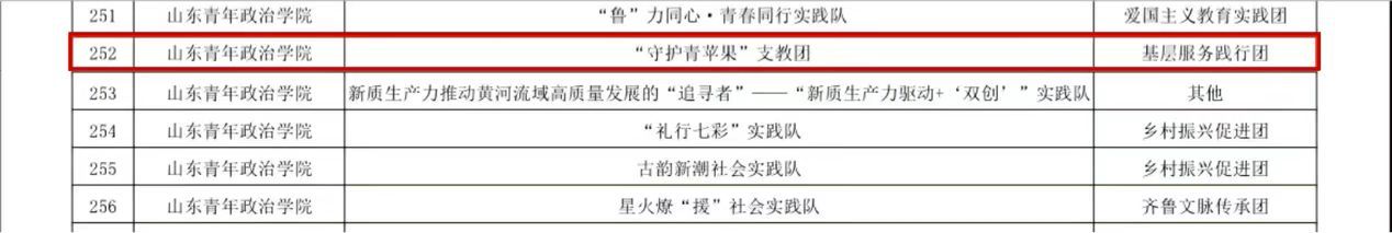 在2025年山东省大中专学生暑期文化科技卫生“三下乡”社会实践评选中,我院“守护青苹果” 支教团凭借扎实的实践开展、专业的服务成效,成功入选省级重点团队,用青春行动书写了新时代青年服务乡村教育的答卷。