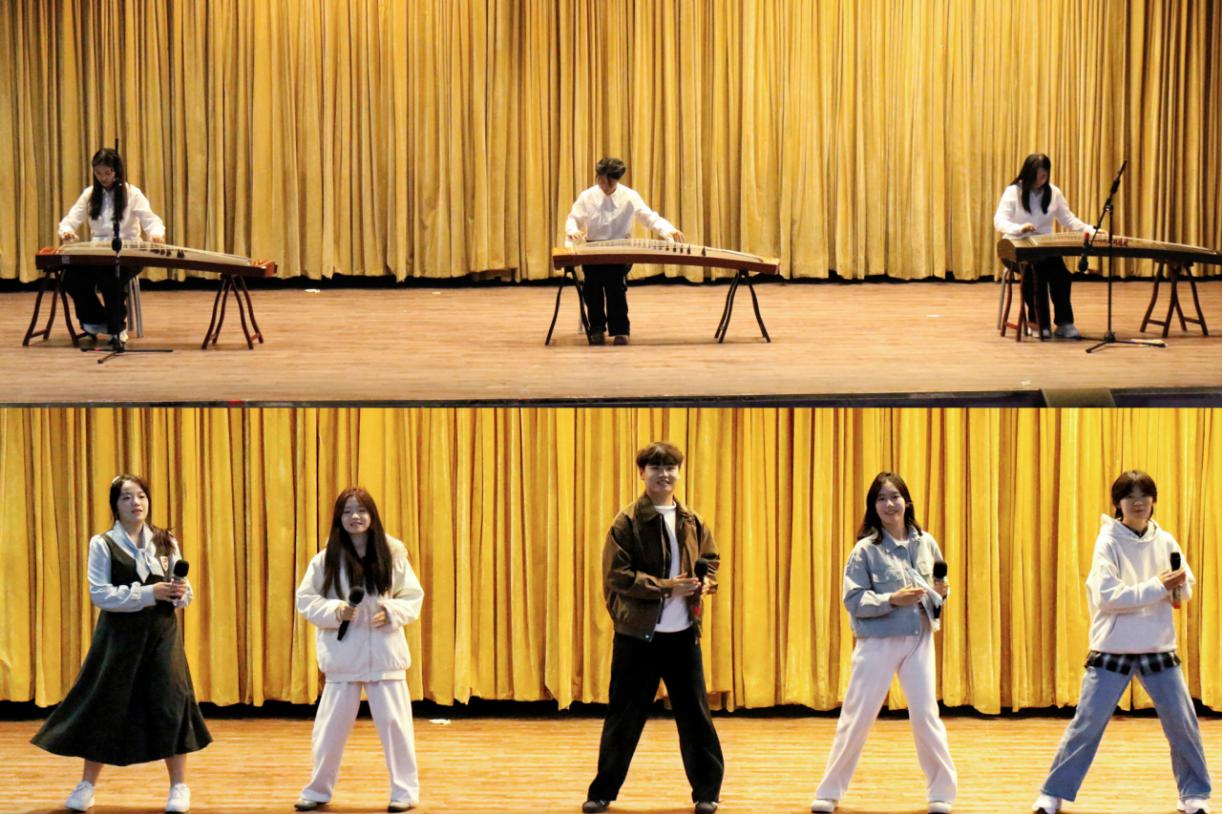 才艺表演环节在学院学生会文体部舞蹈团的开场舞中拉开帷幕,瞬间点燃现场气氛。13个班级轮番献艺,节目类型丰富多样,兼具思想性与艺术性。合唱《夜空中最亮的星》《永远的紫荆花》传递梦想力量与家国情怀;话剧《反诈银行》以幽默剧情普及反诈知识,彰显责任担当;《破晓之光》等节目回顾历史、抒发赤子之心;《律韵青春·乐舞双燃》则融合舞蹈与朗诵,展现班级温情。同学们精神饱满、配合默契,每一个节目都凝聚着班级的智慧与汗水。表演尾声,传统美韵社团与合唱团的精彩助演,为现场增添浓郁的艺术氛围,展现学院学子多才多艺、朝气蓬勃的精神面貌。