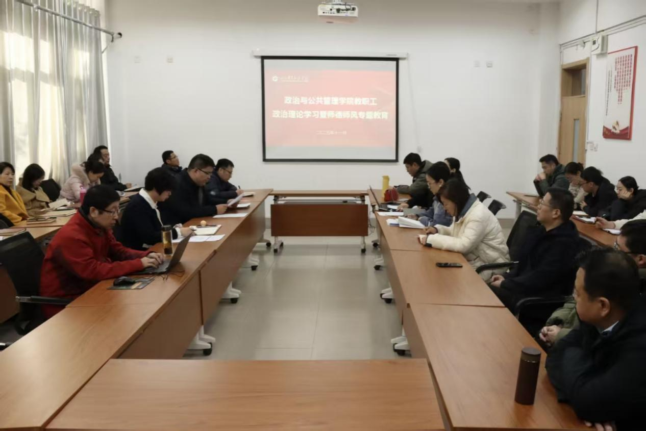 为进一步加强师德师风建设,提高学院教职工的政治素养、理论水平和工作能力。11月27日,政治与公共管理学院在敏行楼104会议室专题学习习近平总书记关于立德树人、教育科技人才协同发展、教育强国建设等重要论述。学院党委书记王正坤主持并领学,全体教师参会。
